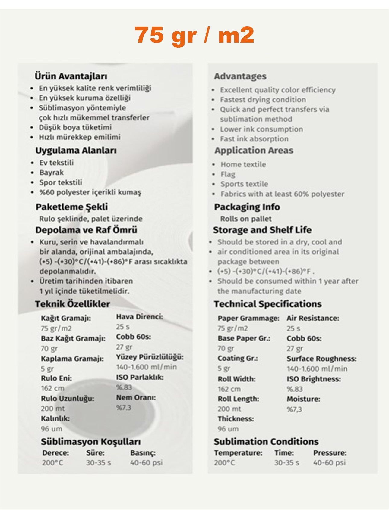 Ürün gramajı : 30-110